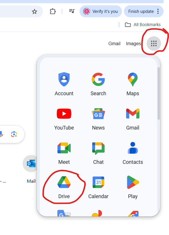 - Go to your Google Apps (9 dots) and click on Google Drive Icon- All your created and uploaded files and folders are organized here.